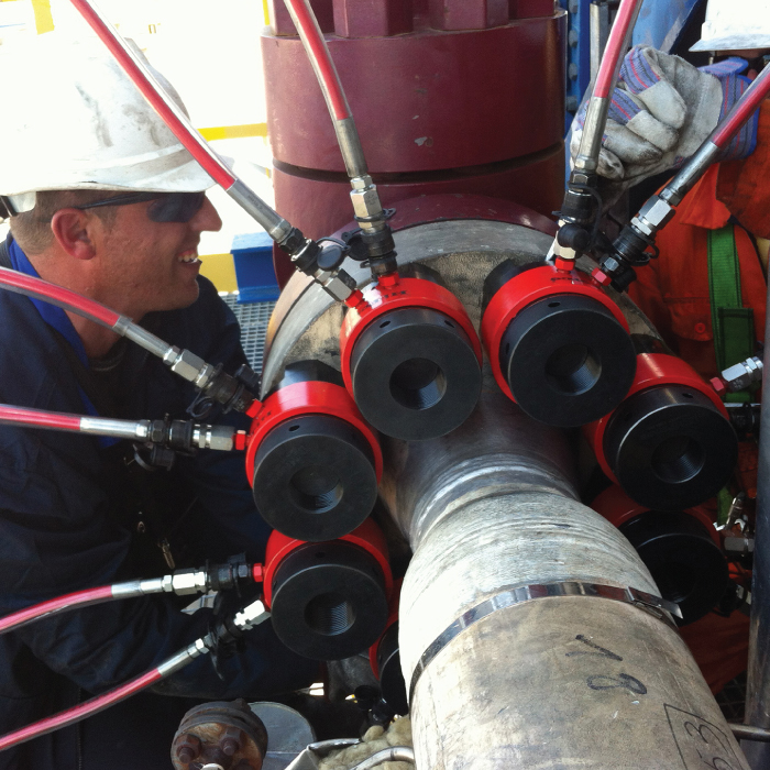 Die metrischen Vorspannzylinder der STS-Reihe sind für Topside Einsätze bei zahlreichen unterschiedlichen Anwendungen gedacht, darunter Pipelineflansche, Wärmetauscher, Druckbehälter, Kompressordeckel, Kesselspeisepumpen, Ankerbolzen uvm. Die Reihe besteht aus 26 metrischen Maßoptionen mit Gewindegrößen 3#4" bis 4". Alle Modelle können bei einem Betriebsdruck bis zu 1500 Bar betrieben werden. Jedes der 6 hydraulischen Vorspannzylindermodelle kann mit unterschiedlichen Gewindeziehern und Mutterringen betrieben werden, um sicherzustellen, dass die größtmögliche Auswahl an Bolzengrößen mit der kleinstmöglichen Anzahl an Hydraulikzylindern verwendet werden kann.