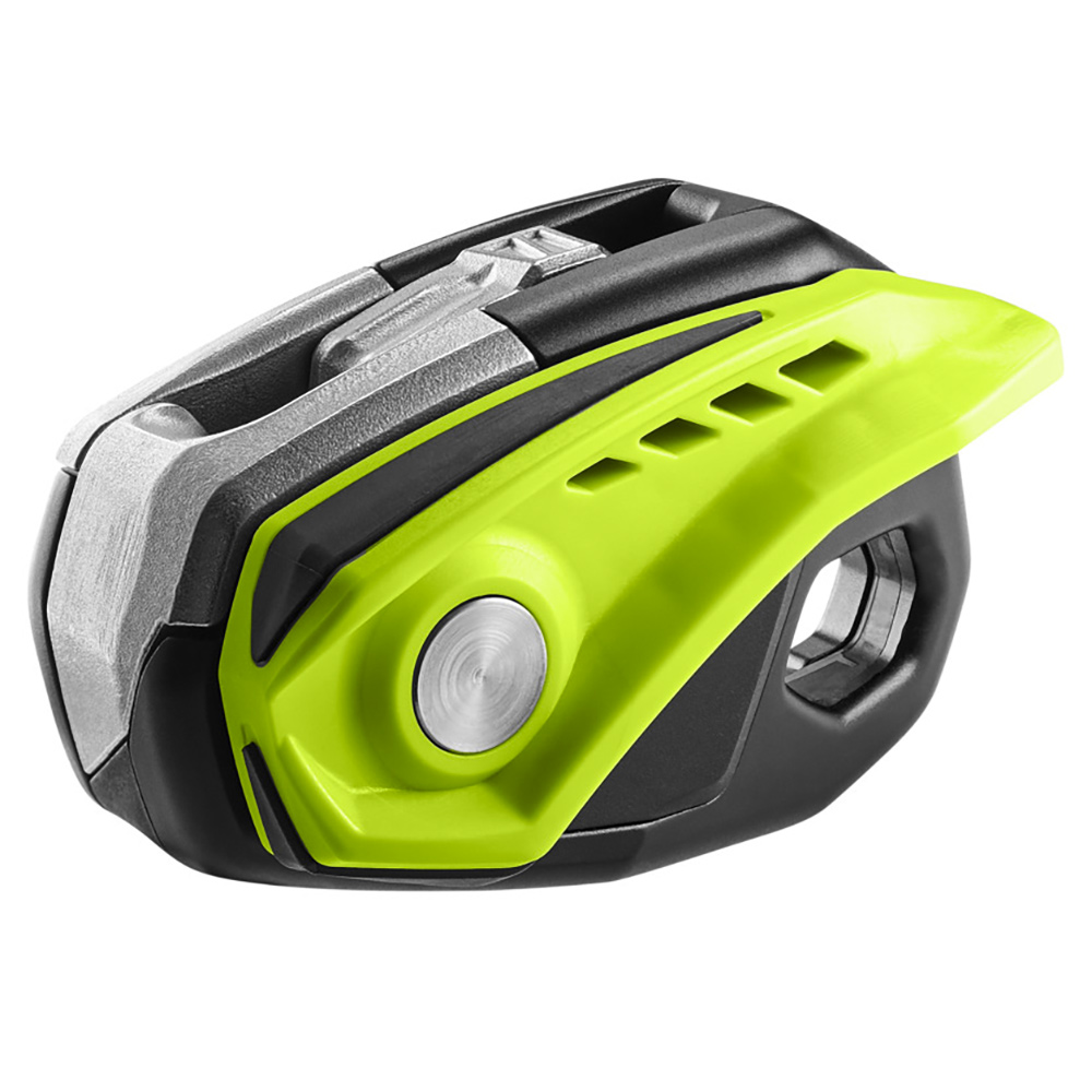 Der Vier-Wege-Sicherheitsverschluss ermöglicht ein bequemes Einlegen des Seiles, ohne das Gerät vom Karabiner zu trennen. An stark beanspruchten Stellen sorgen robuste Stahleinsätze für eine lange Lebensdauer.