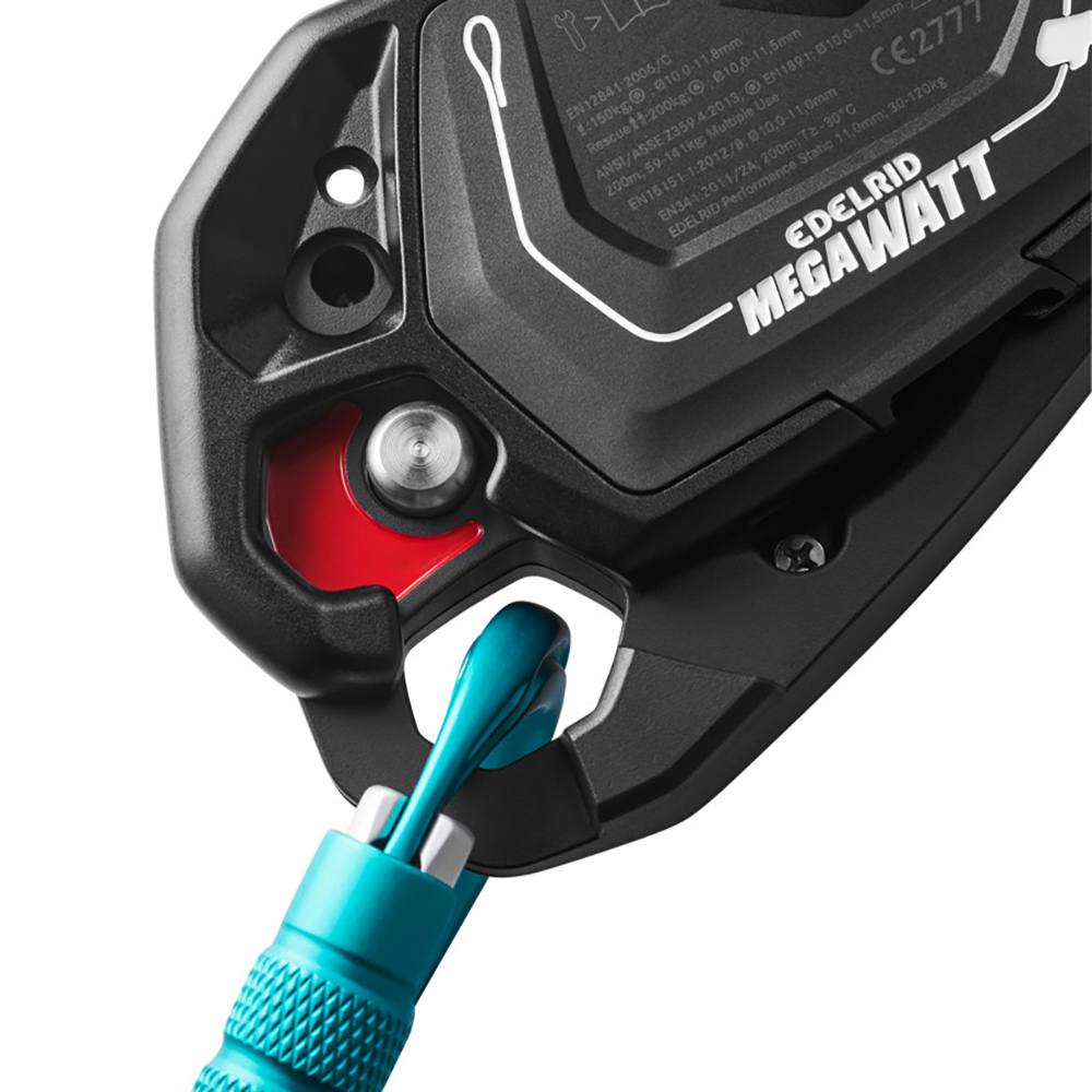 Das Risiko einer unkontrollierten Abseilfahrt wird durch die Anti-Panikfunktion reduziert. Diese kann auch bewusst ausgelöst werden, um die Bedienrichtung des Hebels umzudrehen. Dadurch wird ein optimales Handling für verschiedenste Anwendungen und in jeder Position ermöglicht. Diese ausgeklügelten Features machen das 495 g leichte MEGAWATT zum vielseitigsten Abseilgerät auf dem Markt.