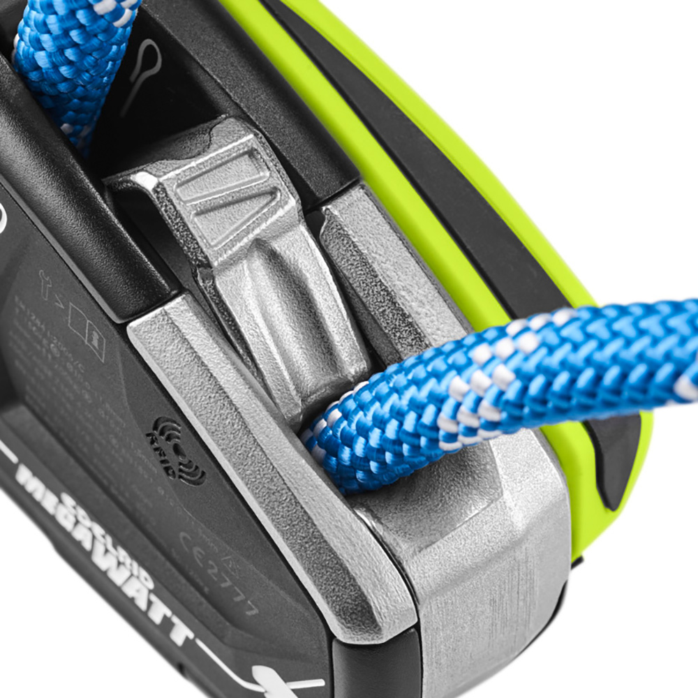 Das MEGAWATT ist ein universelles Abseilgerät für Industriekletter- und Rettungseinsätze bis zu einer Nutzlast von 230 kg. Der Ablasshebel mit seiner intelligenten Übersetzungsmechanik ist mit minimalem Kraftaufwand zu bedienen und sorgt für einen großen Bedienbereich sowie eine exakte Geschwindigkeitsdosierung.