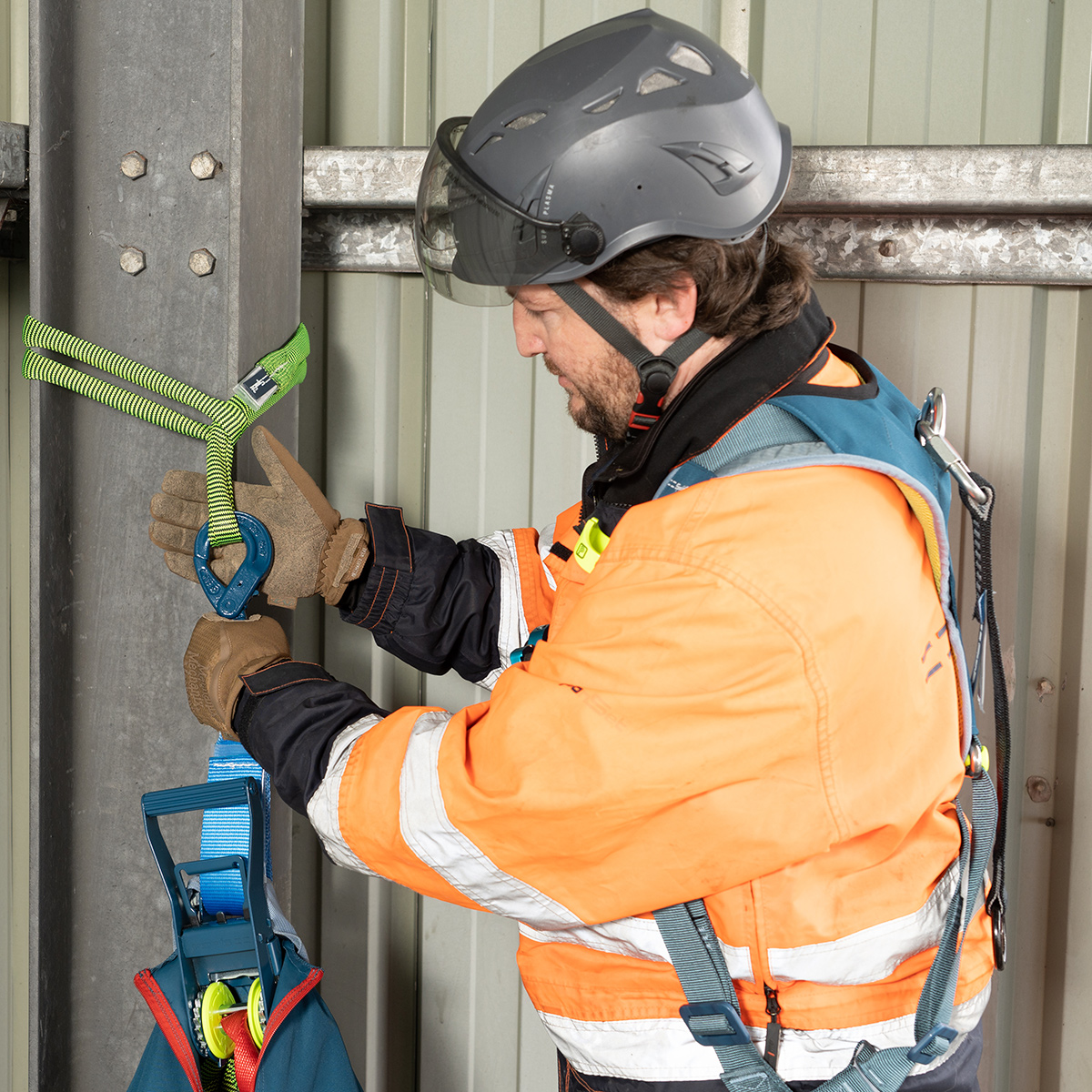 Die Leine ist mit zwei Inline-Verbindungsringen ausgestattet, die sicherstellen, dass alle Verbindungskarabiner oder Haken an der Leine angebracht werden können und sich frei bewegen.