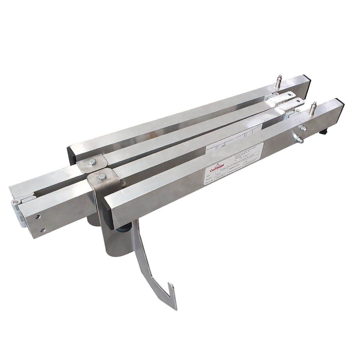 Die vier kugelkopfgelagerten gummierten Stellfüße sorgen für einen sicheren rutschfesten Stand. Zusätzlich wird die Vorrichtung formschlüssig gegen ein seitliches Rutschen in den Schacht gesichert.