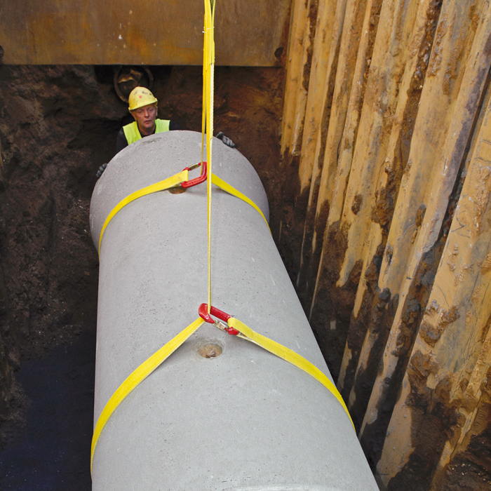 Den C-Bügel kann man rasch ein- und aushaken, wobei die geschmiedete Sicherungsfalle ungewolltes Herausrutschen des Hebebandes verhindert. Bei Beschädigung kann die Sicherungsfalle problemlos ausgetauscht werden. Die äußerst robusten D-Bügel sind nicht nur für den Schnürgang geeignet, sondern passen auch in jeden Kranhaken. Beide Bügel besitzen einen Führungskanal, in dem das Band satt aufliegt.