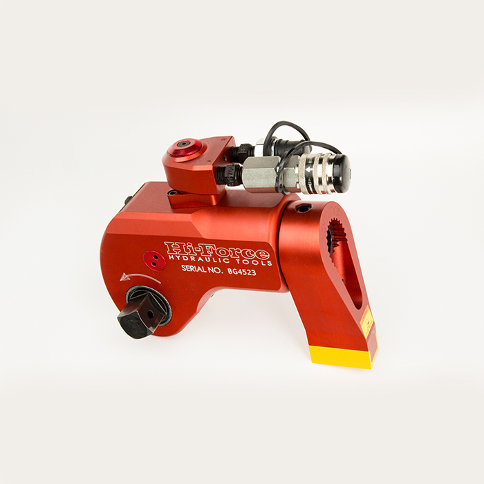 Mit den leichten hydraulischen Aluminiumdrehmomentschlüsseln der TWS-N-Reihe von Hi-Force erledigen Sie auch die schwierigsten Bolzenarbeiten genau und schnell. Alle Modelle gewährleisten eine Drehmomentgenauigkeit von +/- 3%. Die interne Drehmomentstützen-Verzahnung ermöglicht es dem Bediener, das Werkzeug leicht zu positionieren und bei Bedarf direkt am Werkzeugkörper bei Arbeiten auf sehr begrenztem Raum ab zu stützen. Alle Modelle verfügen über einen leicht umkehrbaren hochwertigen Antriebsvierkant aus einer Stahllegierung, mit der der Bediener schnell vom Festziehen auf Lösen umschalten kann. Uni-Swivel Schnellverschlusskupplungen sind standardmäßig an allen Modellen angebracht, was eine leichte Positionierung der Hydraulikschläuche weg von möglichen "Klemmstellen" ermöglicht. Optionale Sechskantinbusantriebe sind verfügbar, ebenso wie eine umfassende Reihe hochwertiger Stecknüsse.