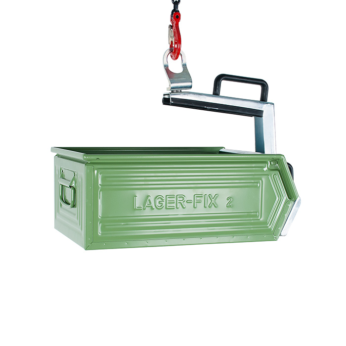 Der CondorGrip Außengreifer ist speziell für den Transport von Sichtlagerkästen konzipiert. Er nutzt hierbei die stabile Querstrebe der Kästen, um eine sichere und schnelle Aufnahme der Last zu gewährleisten.