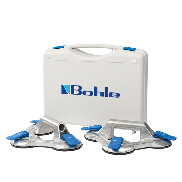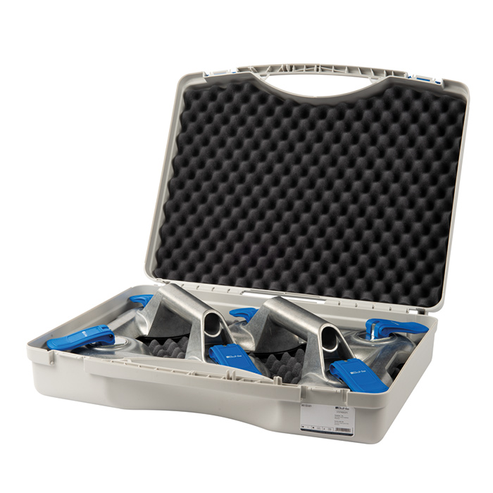 - Sugeløfter med tre puder og vippearm til forskellige lastkapaciteter - Løfter fremstillet af stærkt aluminium - Velegnet til materialer med lufttætte overflader som glas, plast, metal, belagt træ og marmor osv. - TÜV-testet og certificeret med GS-mærket - Sikkerhedsfaktor 2 - Robust plastkuffert medfølger