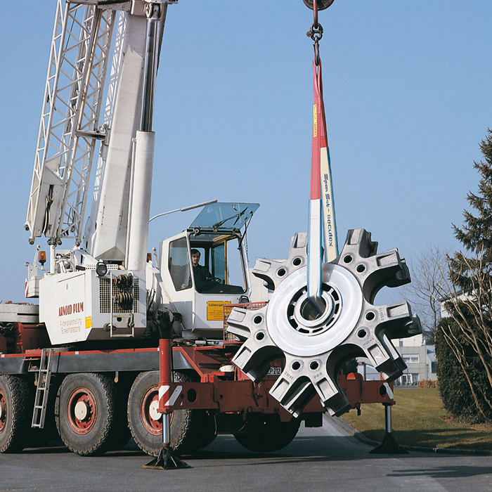 This power-pack is woven out of high-strength PES yarn and sewn in four plies. Thus this webbing sling has a much higher load capacity than one- or two-ply slings of the same width. Therefore PCS slings are perfect for heavy duty applications where slim belts are important e.g. if they
