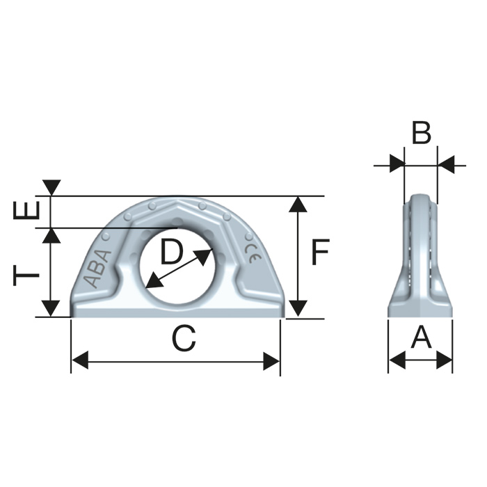 The Weld-On Lifting Point ABA is a versatile, heavy-duty lifting solution designed for permanent attachment to a load-bearing surface. Engineered for full directional load capacity, the ABA lifting point can be loaded from all angles, making it an ideal choice for demanding lifting, turning, and tilting applications across construction, transport, and industrial sectors. Its robust design features a forged ring bracket that can be rotated and aligned precisely in the direction of the load, ensuring optimal force distribution and safety during lifting operations. The ABA is welded directly onto the surface of the structure, providing a secure and tamper-proof anchor point for slings, hooks, and chains. Manufactured from high-strength materials, this lifting point guarantees durability, even under extreme conditions. It is suitable for both static and dynamic loads and meets stringent safety standards for industrial lifting equipment. The Weld-On Lifting Point ABA is trusted for applications where secure, multi-directional lifting is essential. Its compact design and ease of integration into lifting systems make it a dependable choice for safe and efficient load handling. • Loadable on all sides in every direction • Quadruple security against breakage • Quenched and tempered basic body, thus more abrasion resistant • Patented internal and external abrasion markings • circumferential fillet weld • Surface phosphated• If the component is used as a weldable attachment point, load capacity WLL (t) applies.