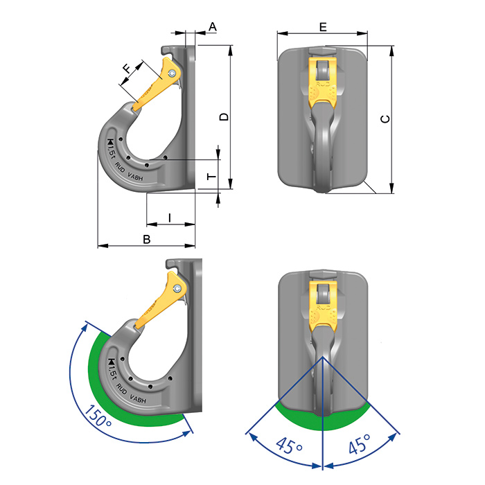 Weld-on hook as lifting point on spreader beams. Suitable for wire