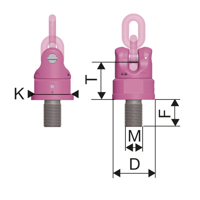 The VIP PowerPoint for Direct Chain Connection is a robust and reliable lifting point designed specifically for secure attachment of lifting chains. Engineered from premium-grade materials, this PowerPoint ensures high strength and durability, making it ideal for demanding lifting and rigging applications in industrial, construction, and manufacturing environments. Designed to facilitate direct chain connection, this lifting point eliminates the need for additional connectors, simplifying the lifting setup and improving efficiency. Its compact and sturdy construction supports heavy loads while providing flexibility for various lifting angles and positions. The VIP PowerPoint for Direct Chain Connection complies with strict safety standards and offers excellent corrosion resistance, making it suitable for use in harsh conditions. This dependable lifting solution enhances safety, reliability, and ease of use when handling heavy loads with chain slings or hoists. • Suitable for all slings, be it hooks, eyes or loops • Can be turned and loaded in 90° angle to the bolt centre line • Sufficient distance to load to avoid damage during turning • Can be used up to -40°C (-40°F) • Double ball bearing for smooth tilting, rotating and turning • All parts 100% crack tested • Variable screw length – including for through bores – (F-vario) • Tightening torque according to instructions • Not suitable for continual rotation under full load • 360° rotatable, 230° tiltable