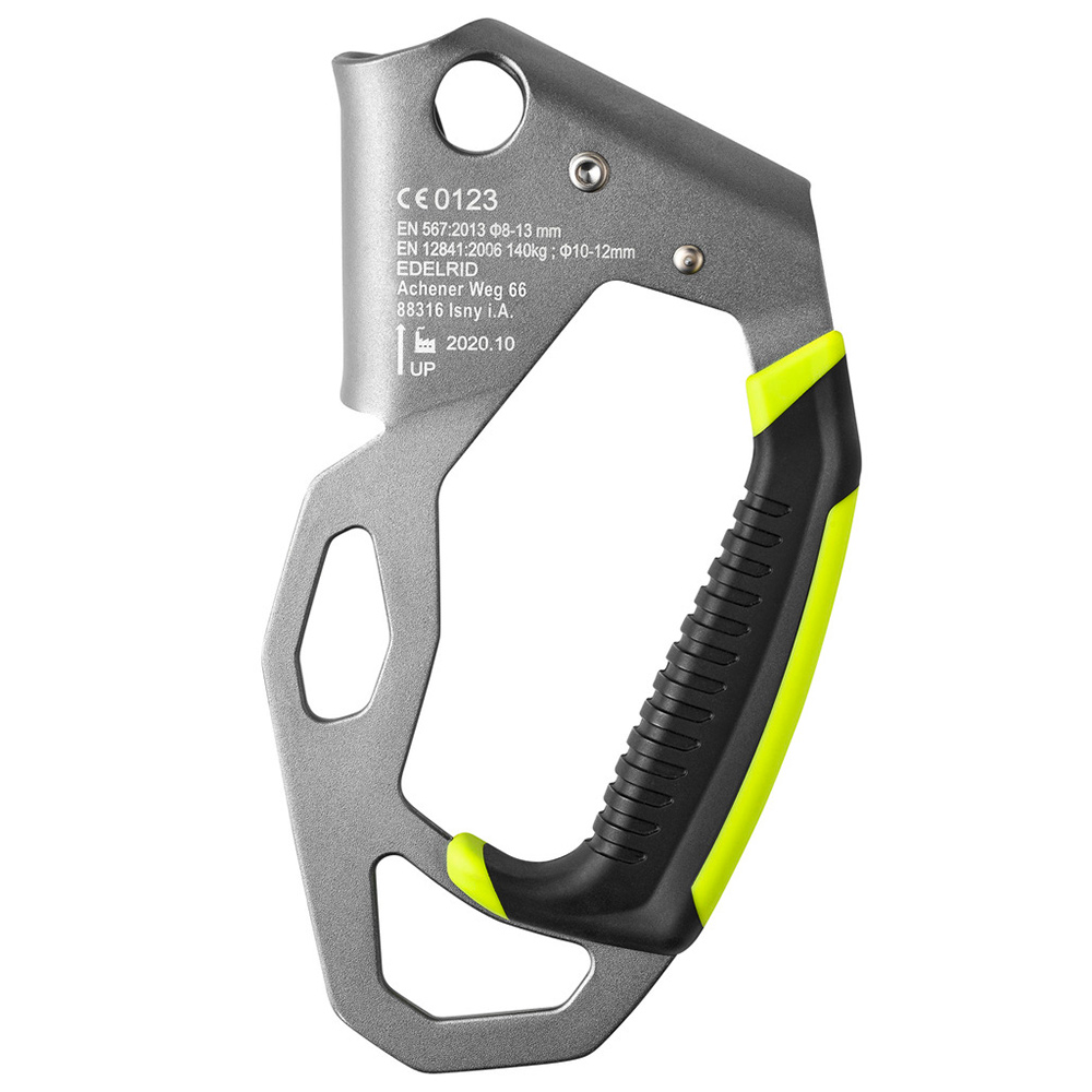 - Head section of the hand ascender can be grasped with second hand for ambidextrous use during ascent