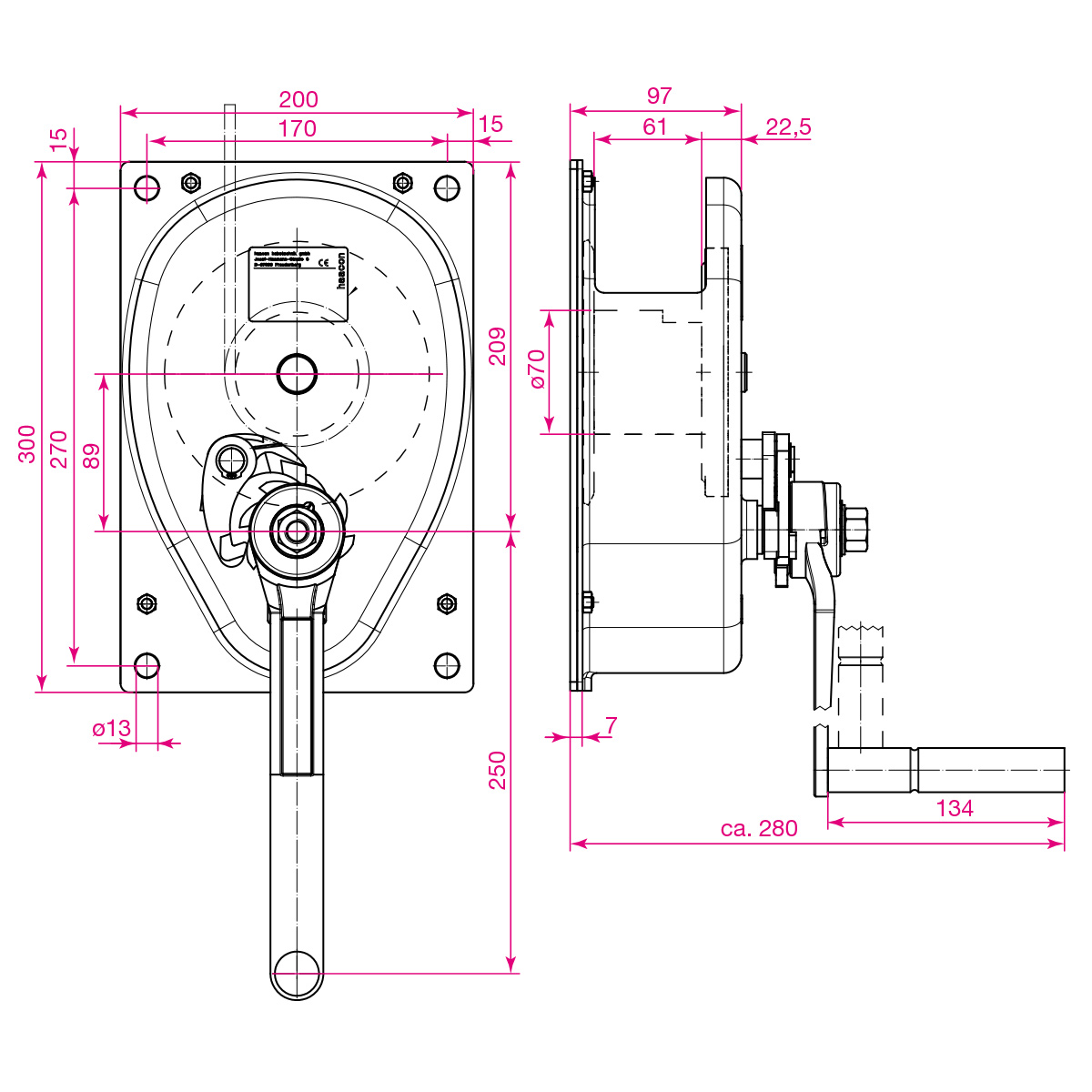 Den väggmonterade vajervinschen typ 220 erbjuder följande fördelar: