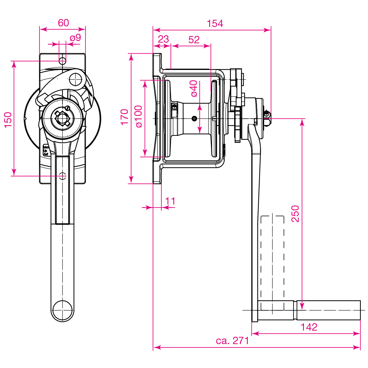 Den väggmonterade vajervinschen typ 4210 har följande fördelar: