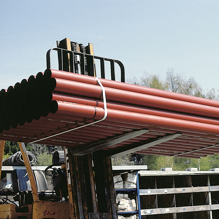 Disposable polyester straps, elastic to impacts and jolts, weather-proof, for extreme loads of 610-2,000 kg (system strength), simple and safe buckle lock.