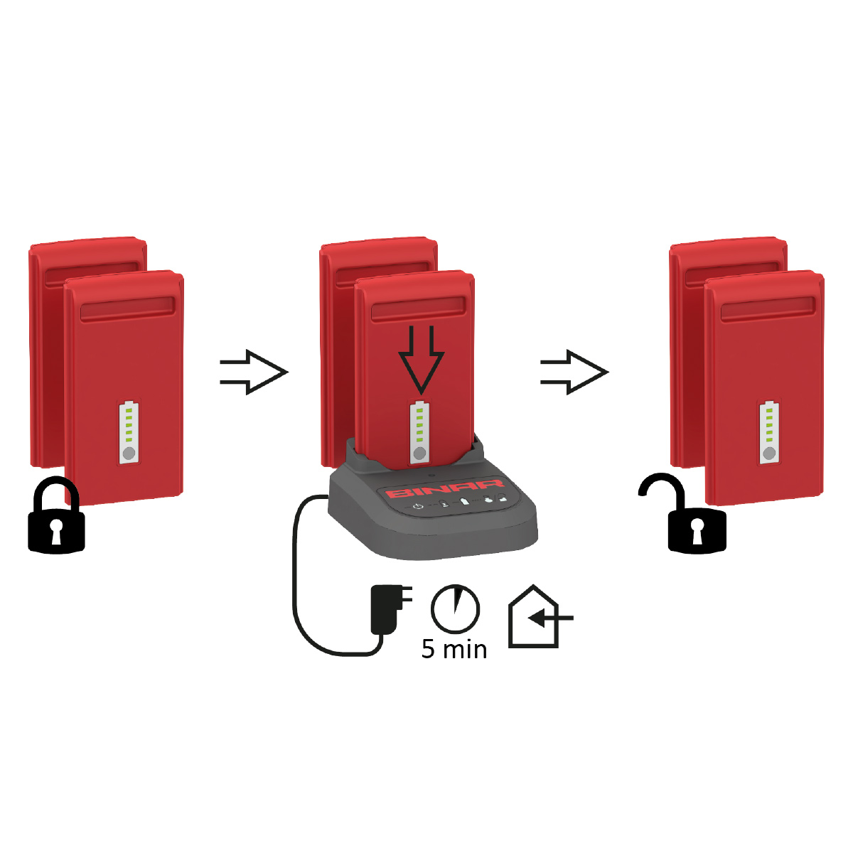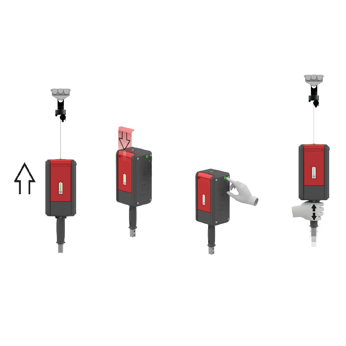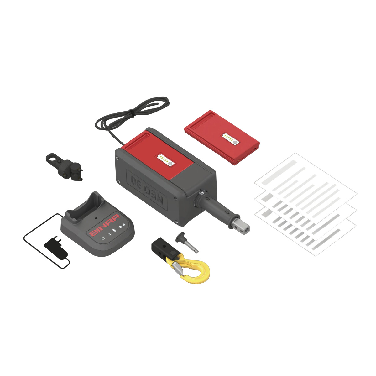 Med sin enkla och snabba installation kan NEO 30 snabbt tas i drift. Anslut helt enkelt den roterande upphängningen till vagnen eller en öglan och NEO 30 är klar för användning. Det finns inget behov av att ta extra utrymme i anspråk eller göra dyra anslutningar till elnätet - NEO 30 är utrustad med ett uppladdningsbart batteri som enda strömkälla.
