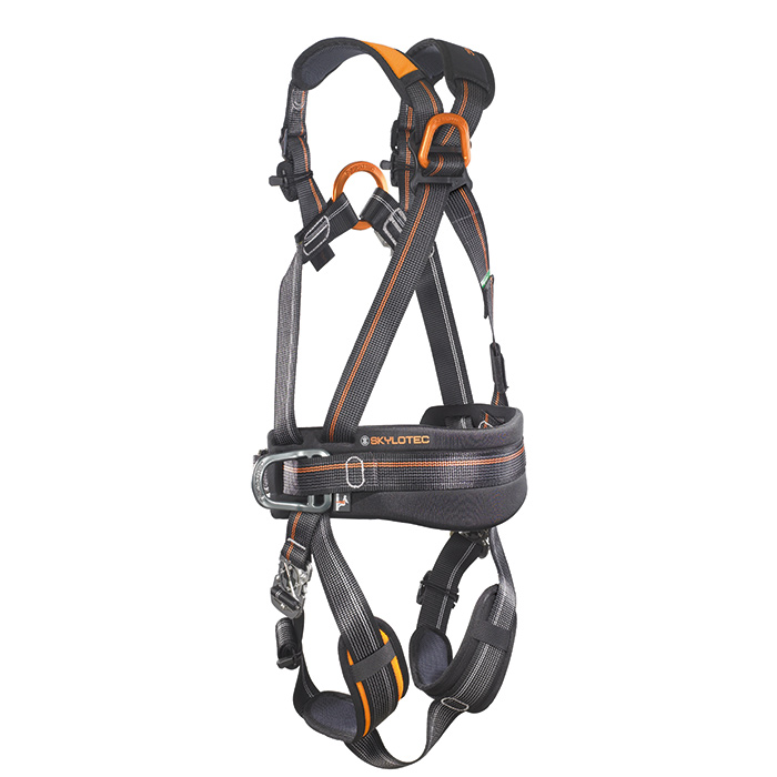 The new high-performance full body harness for industry and trade is uncomplicated and very easy to buckle on. The harness scores with extremely flexible adjustments of belt straps that are passed through the thin but effective hip padding. Due to its asymmetric shape, the padding ensures that the buckle does not exert any pressure in the abdominal area. Ergonomic eyelets are perfectly folded in at the hip without interfering. They are unfolded for use and maintain their position after snapping - if necessary throughout the day. The innovative OKTALOCK click buckles made of stainless steel include new adjustment elements that eliminate undesirable loosening of the belt strap during movement and obviate the need for readjusting during work.