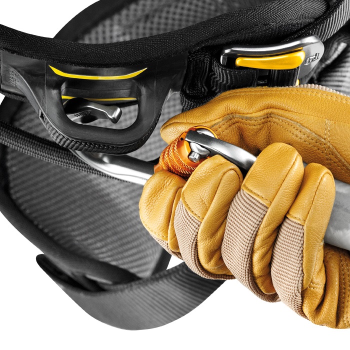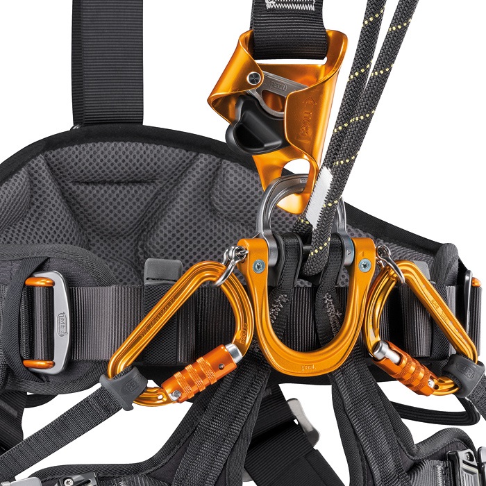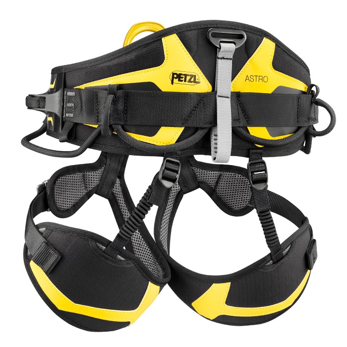 The ASTRO SIT FAST seat and restraint strap for hard-to-reach areas has a screw-on ventral eyelet for attaching equipment (rope clamp, connection means, seat board, etc.). The semi-rigid, wide hip belt and semi-rigid, wide leg loops ensure optimal support. They are preformed and padded with breathable foam to improve comfort when hanging freely.