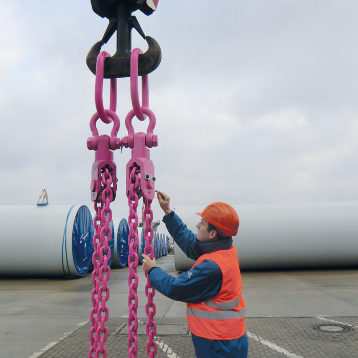 - Force-balancing lifting of loads e.g. erecting tower segments for wind turbines